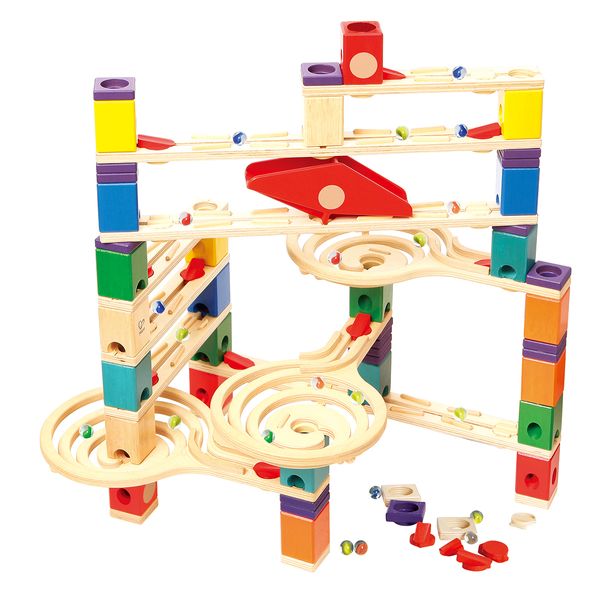 立体的なコースを組み立ててビー玉を転がすおもちゃです。創造力と物理法則の基礎が学べます。