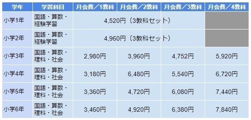 ★英語の月会費は、小学3年・3,700円、小学4年・3,700円、小学5年・4,200円、小学6年・4,200円です。