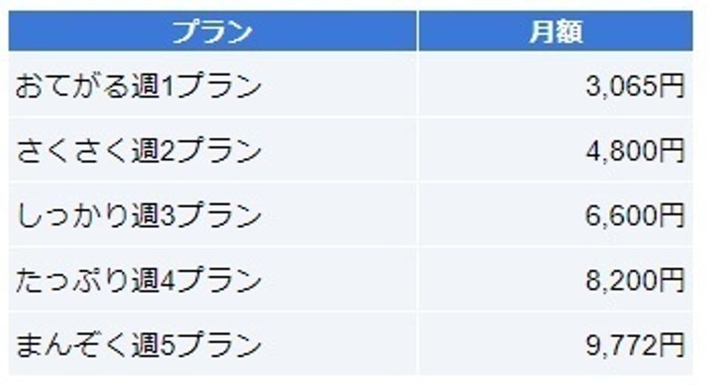 定額コースには週1コースから平日毎日コースまで5つのコースがあります。