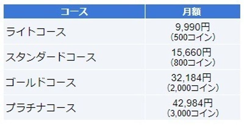 1回の受講に100~200コインが必要になりますので、希望する受講回数に応じてコースを選ぶと良いでしょう。