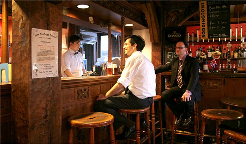英国パブそのままの雰囲気も楽しめます。様々な銘柄のビールやモルトウィスキーが用意されているほか、英国の伝統料理「フィッシュ&チップス」もあります。注文はもちろん英語で!