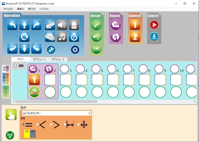 - タッチセンサーがONになったら、サブメニュー1の繰り返しを始める