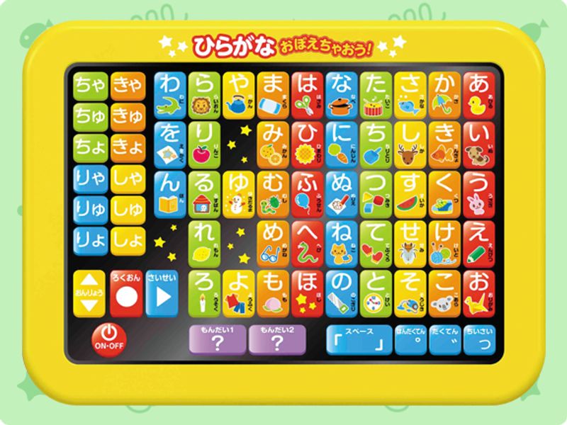 ひらがなのボタンを押すとそのひらがなを読み上げてくれ、自分で押したひらがなを録音することも出来るので楽しんでひらがなを覚えることが可能です。また単音や単語の問題も出ます。機能がシンプルなのでより集中してひらがなを学べますよ。かわいいカラフルなイラスト付きなところも嬉しい点。持ち運びに便利なコンパクトサイズなところも魅力。