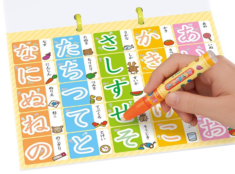 水を専用のペンにいれて書くことで色が変わり、乾けば戻るので繰り返し練習することができます。水で書くので手や衣服も汚れないところも嬉しいですね。かわいいイラストと書き順が書かれているので楽しく練習できますよ。軽くて持ち運びにも便利なので、外出先などでも気軽に出来る点も魅力。筆圧の弱い子でも書きやすいですよ。