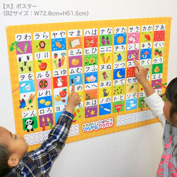 子ども目線で作られており、カラフルなポスターで子どもの目を引き興味をもってもらえますよ。覚えてほしい言葉やイラストも書かれてある点もうれしいですね。ポスターに加え、小ポスターとひらがな、カタカナ、数字の書き順表も入っているのでとてもお買い得です。楽しんで覚えることができますよ。