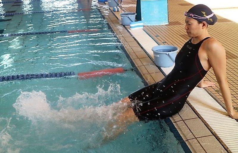 遊泳プールなどの縁で、腰掛けバタ足、腹ばいバタ足などの練習をしてみましょう。ビート板を使ったり、プールの縁につかまってバタ足をしてみるのも良いですね。