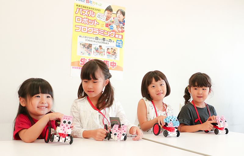 「アーテック自考力キッズ」は、「パズル」「ロボット」「プログラミング」の3つのカリキュラムで「楽しく学びながら自分で考える力(自考力)」を育む、小学校低学年を対象としたプログラミング教室。