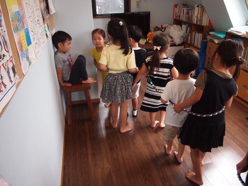 「さて、今日は最初に何をやる?」という小川テューターの一言に、「ロンドン・ブリッジ(London Bridge)!」という子どもたちの声が部屋に響きます。
