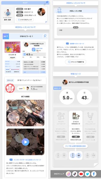 ――コメントだけではなく、写真や動画つきでのレッスン報告やモニタリングできる仕組みは、他の音楽教室にはない取り組みですね。
